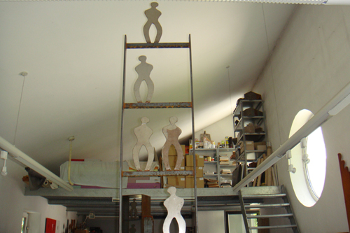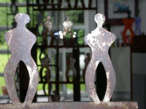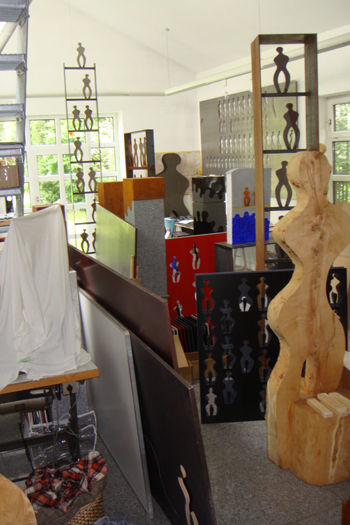 Die Vielgestaltigkeit und Komplexität der Realität wird im künstlerischen Werk auf die entscheidenden Formen konzentriert. Ausdruck findet dieser Ansatz in der Reduzierung der Formensprache auf geometrische Elemente. Im vielfältigen Werk sind Quader und Kuben, Kreise und Punkte, Flächen und Linien wesentliche gestalterische Elemente. Eine dominante, sich im wahrsten Sinne durch fast alle Werke ziehende Rolle spielt jedoch die geschlängelte Linie, „die Welle“. Dieser Minimalismus in der Formensprache hat aber durchaus abbildende Momente in Analogie zur Realität: der Betrachter erlebt „das Werden“ der menschlichen oder naturellen Form aus der geschlängelten Linie… |