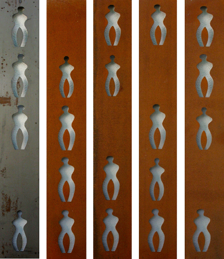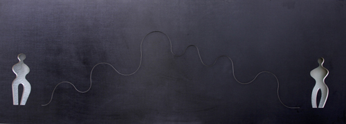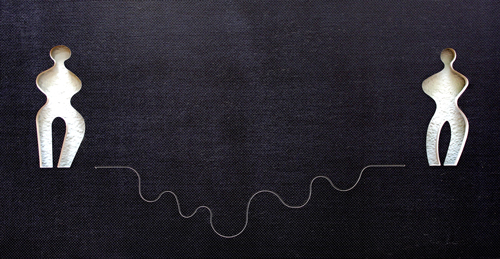 Die Vielgestaltigkeit und Komplexität der Realität wird im künstlerischen Werk auf die entscheidenden Formen konzentriert. Ausdruck findet dieser Ansatz in der Reduzierung der Formensprache auf geometrische Elemente. Im vielfältigen Werk sind Quader und Kuben, Kreise und Punkte, Flächen und Linien wesentliche gestalterische Elemente. Eine dominante, sich im wahrsten Sinne durch fast alle Werke ziehende Rolle spielt jedoch die geschlängelte Linie, „die Welle“. Dieser Minimalismus in der Formensprache hat aber durchaus abbildende Momente in Analogie zur Realität: der Betrachter erlebt „das Werden“ der menschlichen oder naturellen Form aus der geschlängelten Linie… |